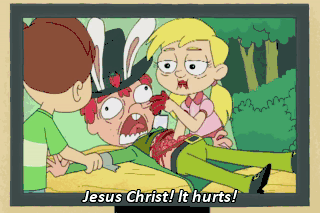 Jesus Christ! lt hurts! My entrails are outi Why would you even want to eat these? They're soaked with my stomach acid, Oh, Jesus Christ, lord, savior, and spirit, sa ve me.