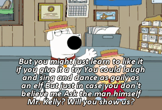 But you might just learn to like it if you give it a try You could laugh and sing and dance as gaily as an elf But just in case you don't believe me Ask the man himself Mr. Kelly? Will you show us?