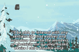 I'll be able to interact with any sentient life that evolves and introduce them to the wonders of electricity via a pulley-based device I call a blooble yank.
