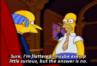 Sure, I'm flattered, maybe even a little curious, but the answer is no.