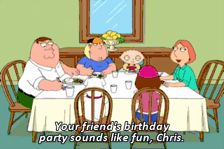 Yeah, but I hope for your sake, the cake's better than the last party I went to.