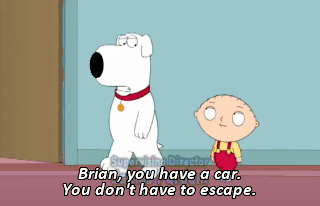 Brian, you have a car. You don't have to escape. Just don't fucking say anything, okay?