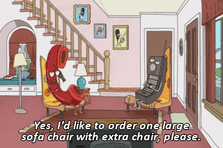 Yes, I'd like to order one large sofa chair with extra chair, please. High chair. No, no, no, no. Recliner. And wheelchair on half.