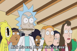 Kick his ass, Brad! Kick his ass! ALL: Kick his ass! Kick his ass! Brad! Stupid! Rick! I just did you a favor, Marty, Sorry about all that. Rick has some really strange friends. Ugh! Brad is such a jerk.