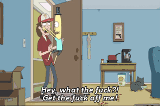 Hey, what the fuck?! Get the fuck off me! Ow! Turn in to "Rick and Marty" season three in, like, a year and a half... or longer to see how we unravel this mess. Ooh-Whee! Oh, my god!