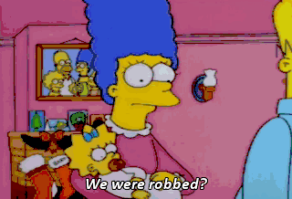 We were robbed? Uh-huh, uh-huh, uh-huh. How could somebody-- I know! Can... we... skip... church?