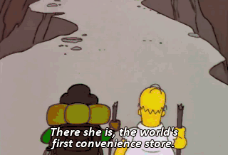 There she is, the world's first convenience store. This isn't very convenient. Must you dump on everything we do?