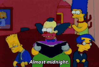 Almost midnight. Do you have any yearbooks? You've seen everything. Milhouse, know any "knock, knock" jokes? I want to go home. Homer, maybe you better take Milhouse home. Gladly.
