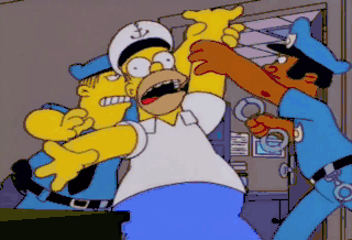 Ow! Oh, my boating arm! What's going on! You're under arrest, slimebag. What's this perp in for, Lou? 235 unpaid parking tickets, totaling $175.