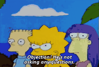 Objection! He's not asking any questions. Hmm. I'm gonna allow this. Ow. Ow. Ooh. Prosecution rests.