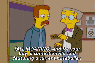 (ALL MOANING) And for your boy, a confectioner's card featuring a current baseballer.