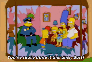 You've really done it this time, Bart! You're in for the punishment of a lifetime! When do you expect the ringing will stop? In about 10 to 15 seconds! I certainly hope so! That's better.