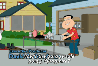 How's the garage sale going, Quagmire?