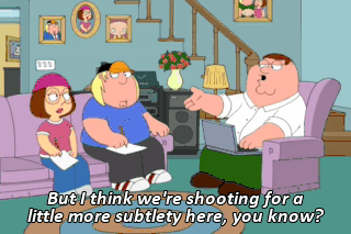 But I think we're shooting for a little more subtlety here, you know?