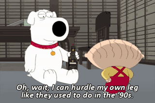 Oh, wait, I can hurdle my own leg like they used to do in the '90s. Okay, all right, this is gonna sound really weird. This is gonna sound really weird, but I really want you to do it, okay? What?
