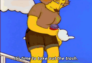 It's time to take out the trash. I'll get you for this, Midler! And off to your left is Hugh Hefner's Shelbyville pad. A lot of people know about the grotto and the game room. Of course.