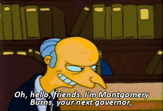 Oh, hello, friends. I'm Montgomery Burns, your next governor,