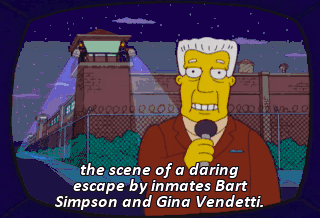 the scene of a daring escape by inmates Bart Simpson and Gina Vendetti.