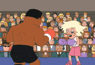 You ain't so tough, young man. That all you got, you son ofa bitch? You're going down, young man. You're going down! I can't believe this. She keeps getting up. I'm so exhausted.