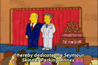 I hereby dedicate the Seymour Skinner Parking Annex. Did they have to guess the date of my death?