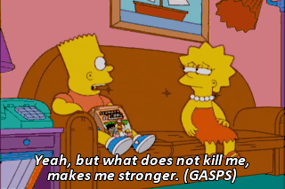 Yeah, but what does not kill me, makes me stronger. (GASPS) Wow! That was a lot of words. I need some energy.