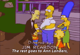 The rest goes to Ann Landers, as was stipulated in your aunt's will. Oh, i'm sorry. I must have continued talking after you left the office. I do that sometimes.