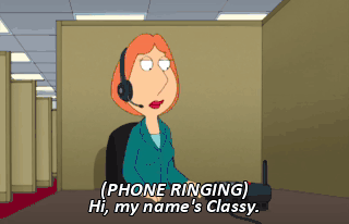 (PHONE RINGING) Hi, my name's Classy. What can I do for you, hot stuff? Oh, hi, Classy. You sound very classy. Listen, do you have a wallet or a purse? Uh, I have a purse. Oh! Oh, baby.