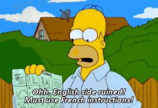 Ohh. English side ruined! Must use French instructions! "Le grille"? What the hell is that? Come here. Get-- Uh.
