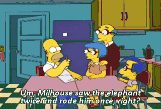 Um, Milhouse saw the elephant twice and rode him once, right?