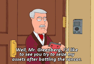 Well, Mr. Greenberg, I'd like to see you try to seize my assets after battling the rancor.