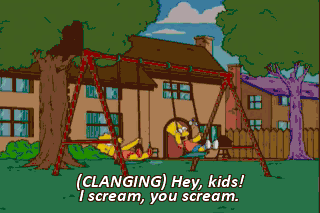 (CLANGING) Hey, kids! I scream, you scream. We all scream for... ...haircuts! (BOTH SCREAM) (BOTH GROAN) Mom, Bart and I have been talking...