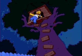 Get him! Bust him, Mom! Go back to bed! Don't make me come up there. Looks like your wife is embarking up the wrong tree.