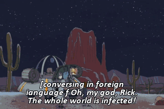[conversing in foreign ianguage f Oh, my god, Rick. The whole world is infected!