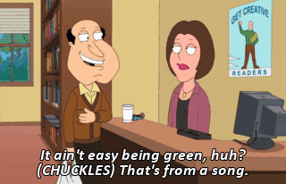 It ain't easy being green, huh? (CHUCKLES) That's from a song.