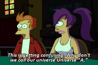 This is getting confusing. Why don't we call our universe Universe "A," and this universe Universe "B"?
