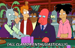 (ALL CLAMOR ENTHUSIASTICALLY) Let it ride! (ALL GASP) 34 red. Ten billion, 368 million dollars.