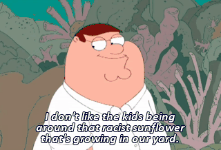 I don't like the kids being around that racist sunflower that's growing in our yard. Hey, boy, don't you come walking by this house. You're ignorant.