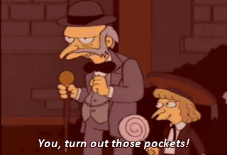 You, turn out those pockets! Atoms. One, two, three, four-- Six of them! Take him away! You can't treat the workingman this way!
