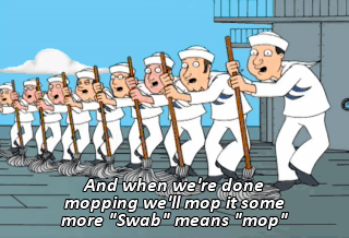 And when we're done mopping we'll mop it some more "Swab" means "mop"