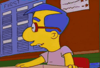 Oh, and there's this one! It's the last day of school, Milhouse. Try to show some dignity. Gentlemen, start your chimes.