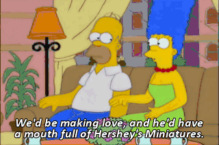 We'd be making love, and he'd have a mouth full of Hershey's Miniatures. Krackle was my favorite. I hope that was the only miniature in the bedroom. I'm talkin' downtown.