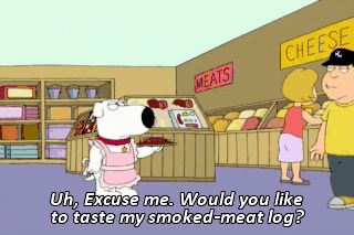 Uh, Excuse me. Would you like to taste my smoked-meat log?
