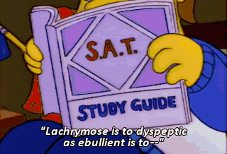 "Lachrymose is to dyspeptic as ebullient is to--"