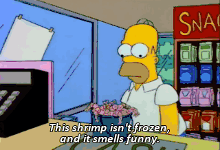 This shrimp isn't frozen, and it smells funny. - Okay. Ten pounds. - Whoo-hoo! Brought to you by--