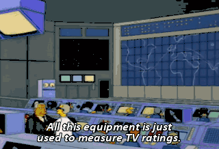 All this equipment is just used to measure TV ratings. It's beautiful. It's the most awe-inspiring sight I have ever seen. Giver of life, mother of us all.