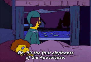 Oh, it's the four elephants of the Apocalypse. That's horsemen, Ned. Well, getting closer.