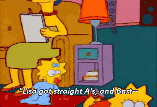 "Lisa got straight A's, and Bart-- "Well, we love Bart.