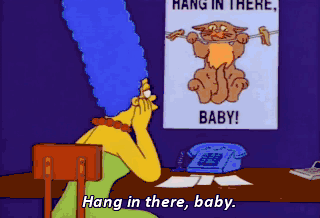 Hang in there, baby. You said it, kitty. "Copyright 1968"? Hmm. Determined or not, that cat must be long dead. That's kind of a downer. They're good pretzels, Mom.