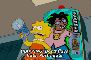 (RAPPING) Don't flavor hate. Participate. Machine makes a good point. Don't be a follower! Be a snack-swallower! It's fun to obey the machine. (WHIRRING) Mmm. Mmm. Mmm. (SIGHS)