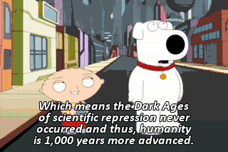 Which means the Dark Ages of scientific repression never occurred and thus, humanity is 1,000 years more advanced.